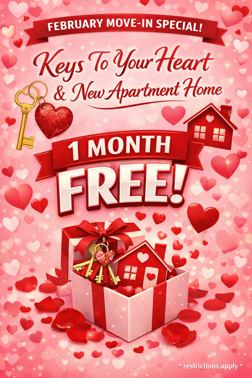 1 Month Free!! Valentine's Move In Specials!! *Restrictions Apply